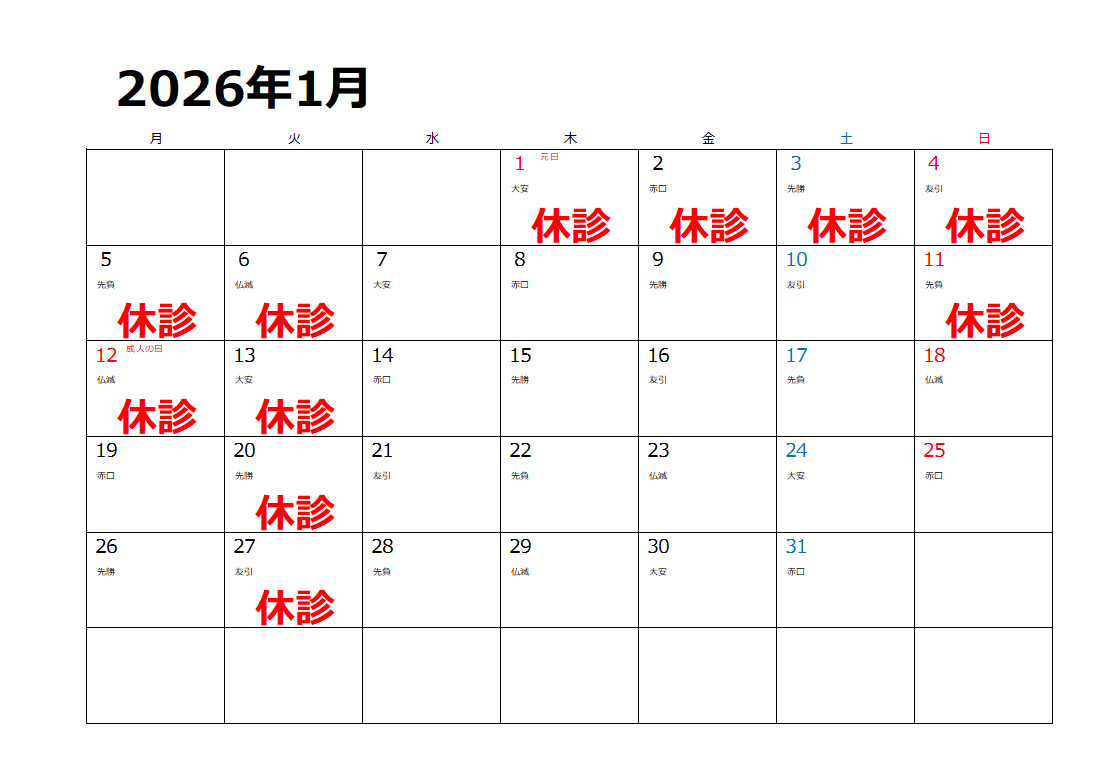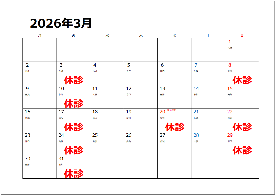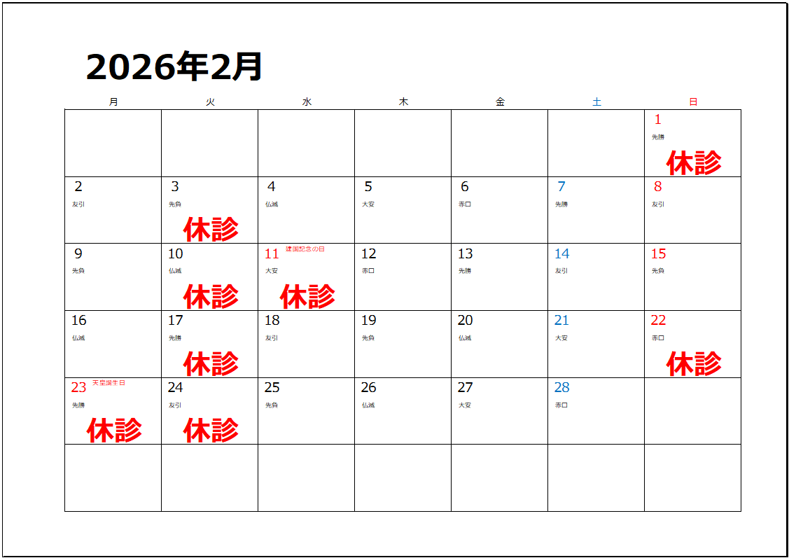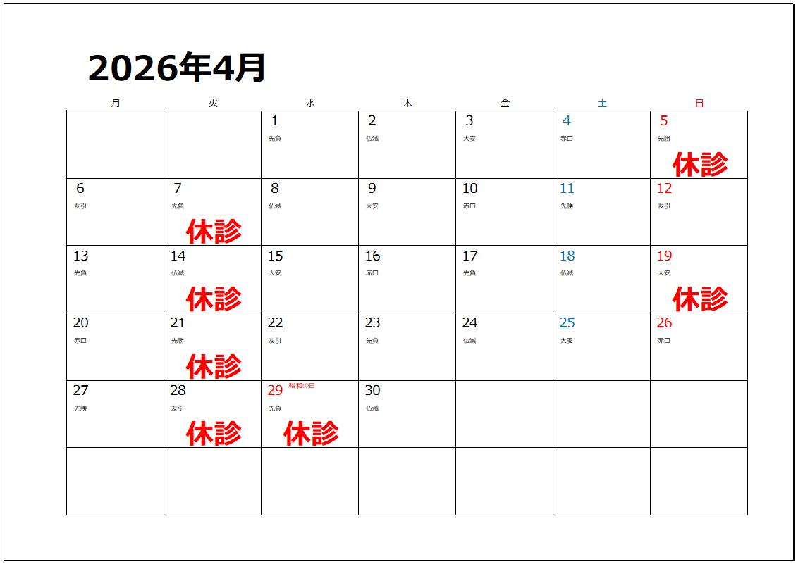 当院の休診日は下記となります。